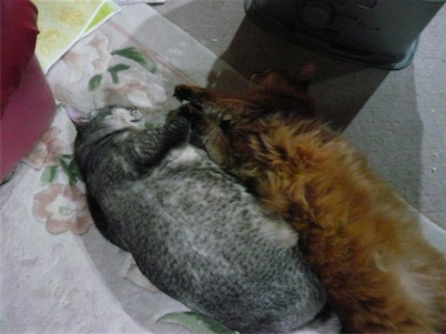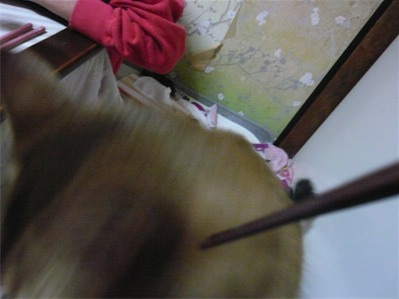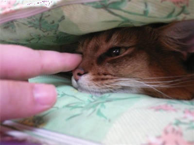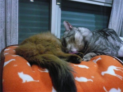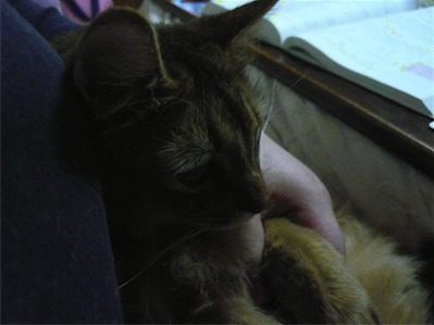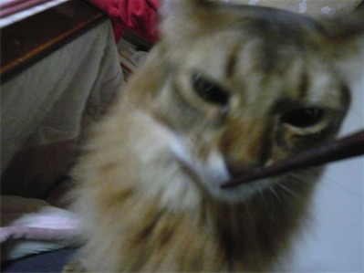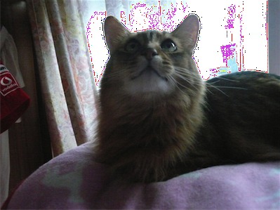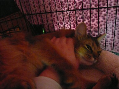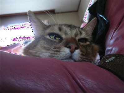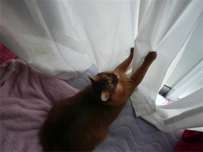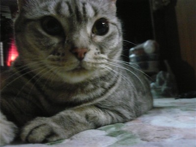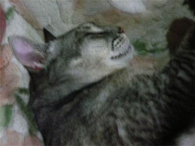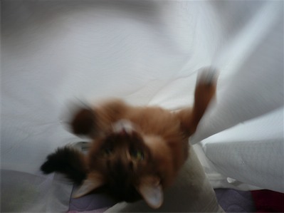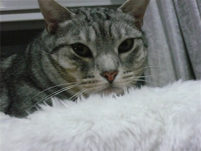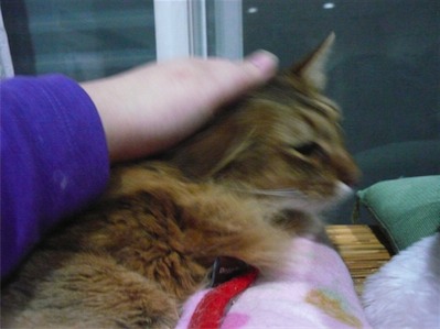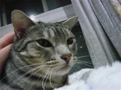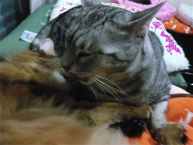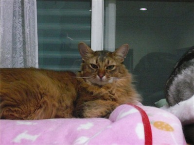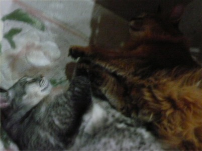 イリヤにはよくキャッチ&リリースされて弄ばれているような・・・本当はみんなの面倒を見たいおばあちゃん猫。(みんなの耳の匂いを優しく嗅いで舐めてあげようとする)動きは家の中で一番機敏。