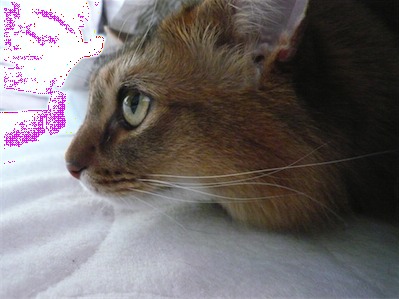 ロゼ ノアちゃんの妹。初めてポチポチ豹柄猫!!でも小さい頃は目がヘビっぽかった。(今だから言えるけど)多分イリヤと一番よく遊んでる。あだ名は小テト。最高にcuteで、書いてる人のことが大好き♥人間のひざの上でまったりしたり、指を舐めてくれる。