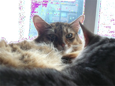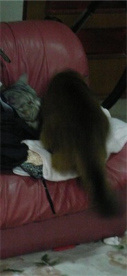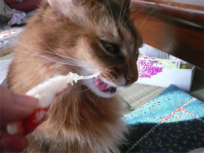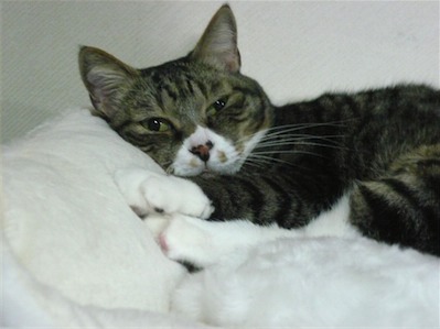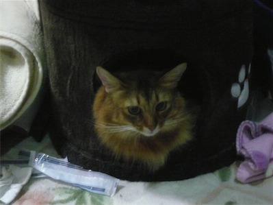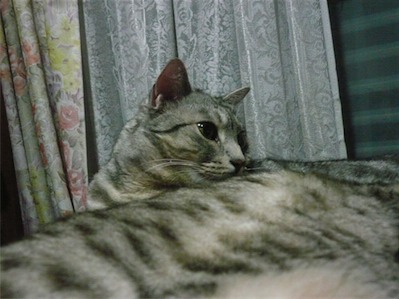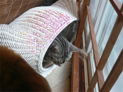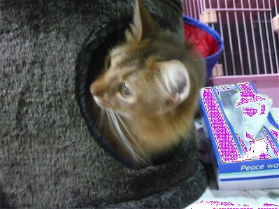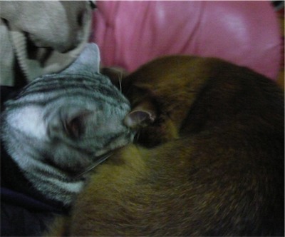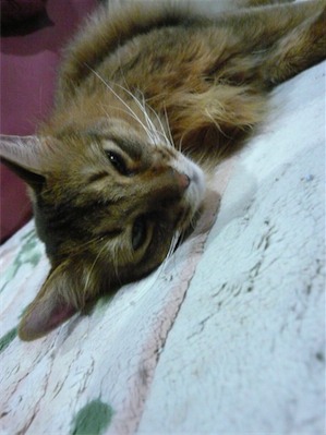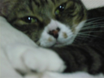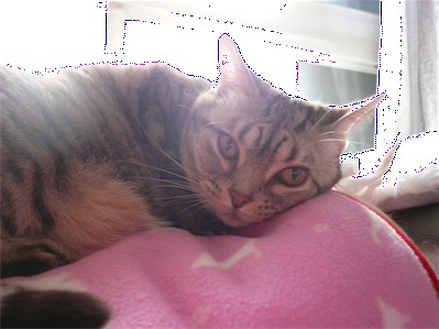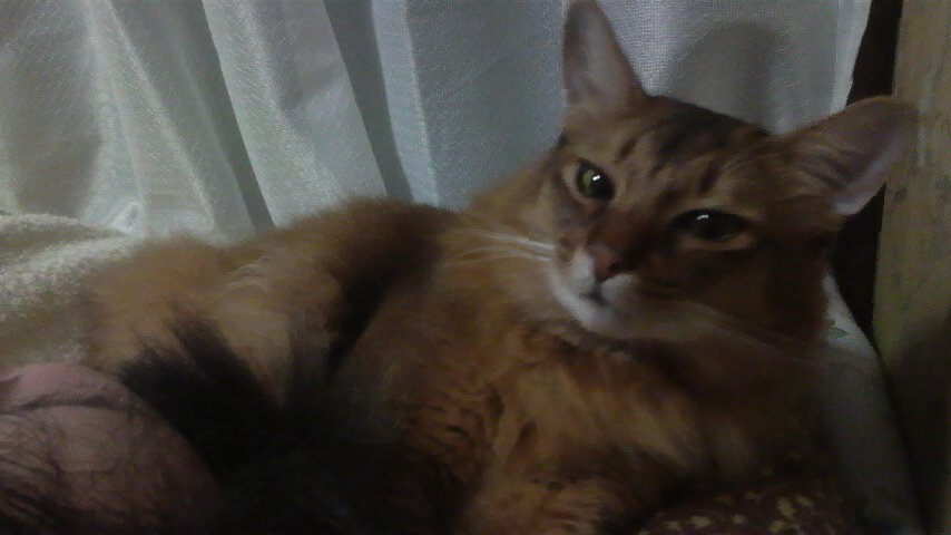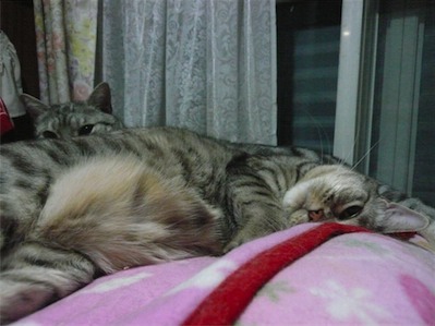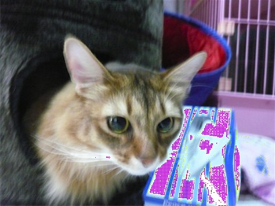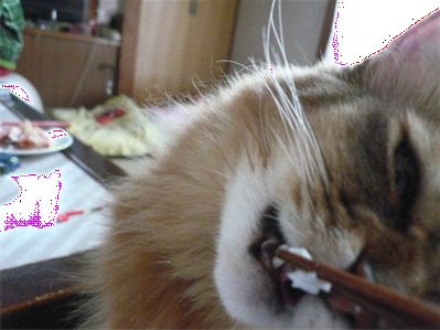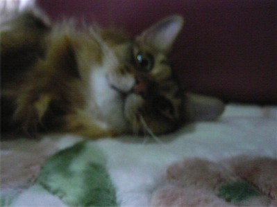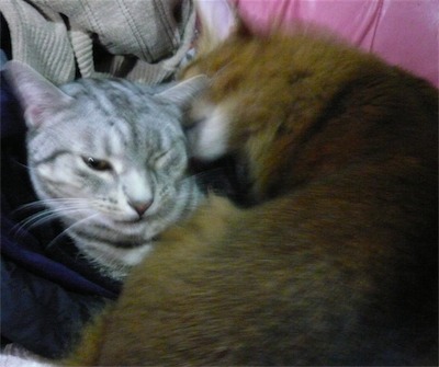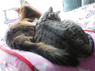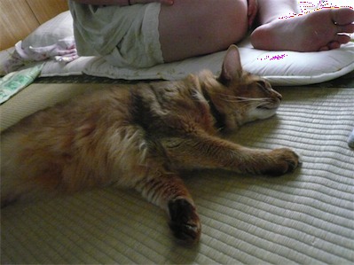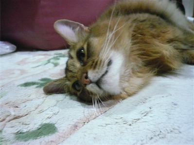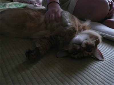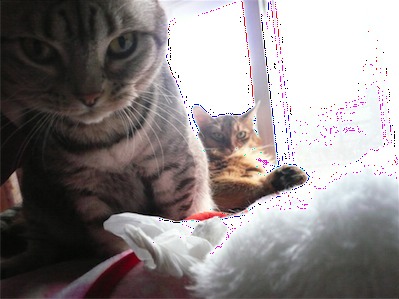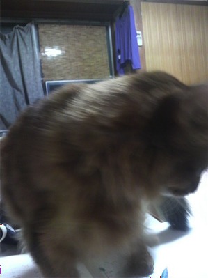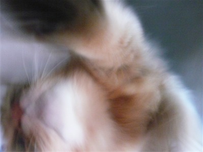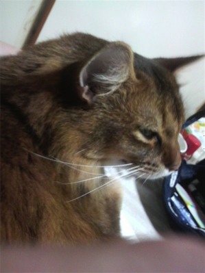 イリヤにはよくキャッチ&リリースされて弄ばれているような・・・本当はみんなの面倒を見たいおばあちゃん猫。(みんなの耳の匂いを優しく嗅いで舐めてあげようとする)動きは家の中で一番機敏。