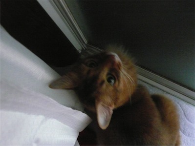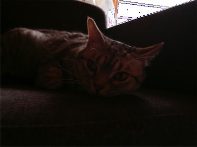 ロゼ ノアちゃんの妹。初めてポチポチ豹柄猫!!でも小さい頃は目がヘビっぽかった。(今だから言えるけど)多分イリヤと一番よく遊んでる。あだ名は小テト。最高にcuteで、書いてる人のことが大好き♥人間のひざの上でまったりしたり、指を舐めてくれる。