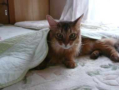 私を見ると、ベッド下に駆け込んでいきました。