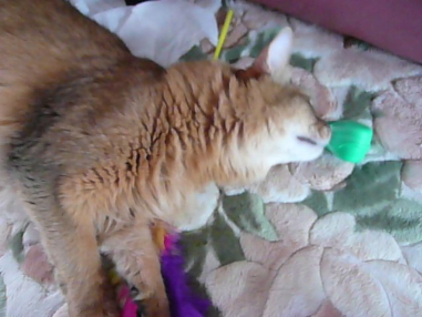その反面、ささみでおびき出して(笑)ベッド下から出てきたところを抱っこすると、おとなしく抱っこされたまま。