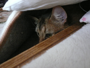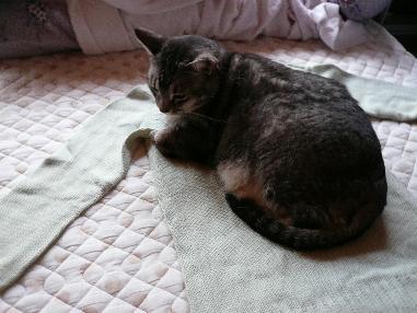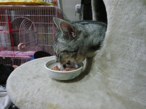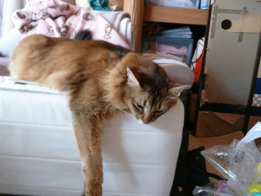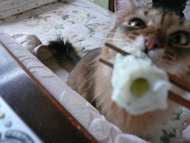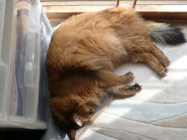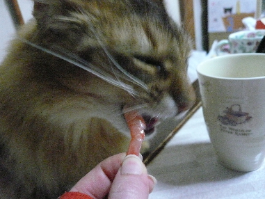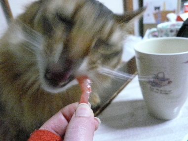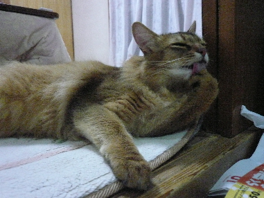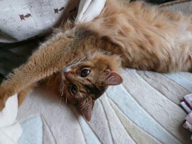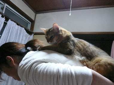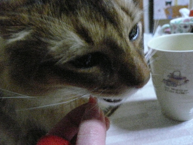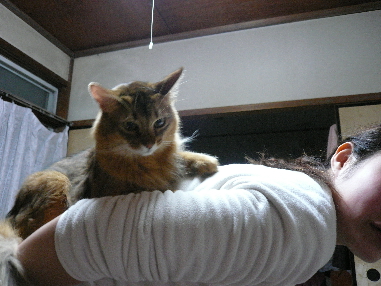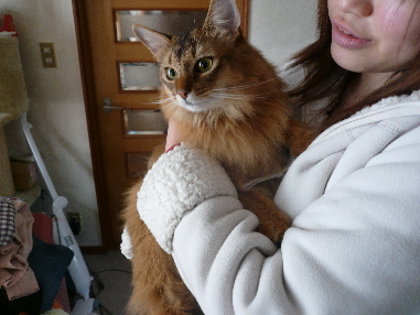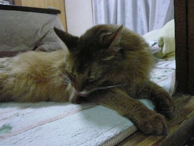 イリヤにはよくキャッチ&リリースされて弄ばれているような・・・本当はみんなの面倒を見たいおばあちゃん猫。(みんなの耳の匂いを優しく嗅いで舐めてあげようとする)動きは家の中で一番機敏。