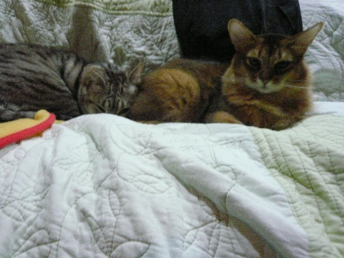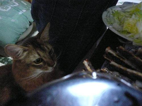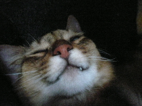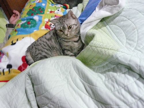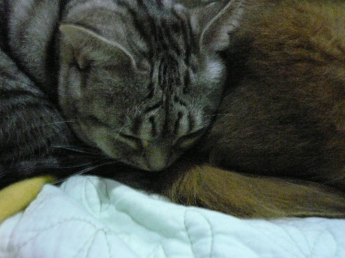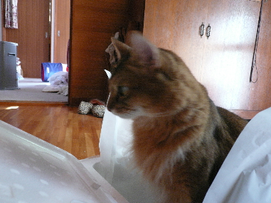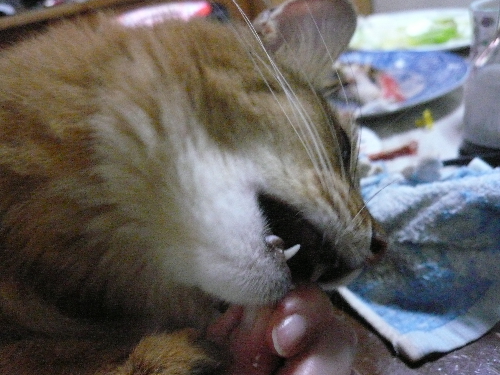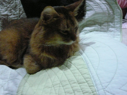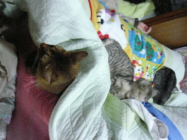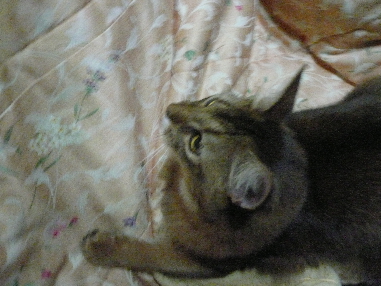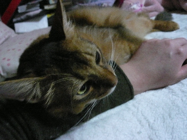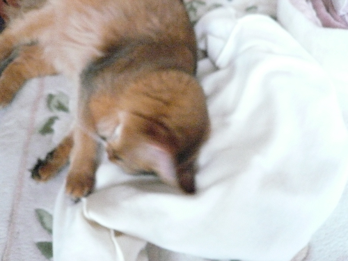 イリヤにはよくキャッチ&リリースされて弄ばれているような・・・本当はみんなの面倒を見たいおばあちゃん猫。(みんなの耳の匂いを優しく嗅いで舐めてあげようとする)動きは家の中で一番機敏。