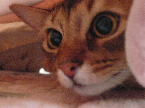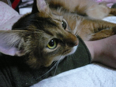 ロゼ ノアちゃんの妹。初めてポチポチ豹柄猫!!でも小さい頃は目がヘビっぽかった。(今だから言えるけど)多分イリヤと一番よく遊んでる。あだ名は小テト。最高にcuteで、書いてる人のことが大好き♥人間のひざの上でまったりしたり、指を舐めてくれる。