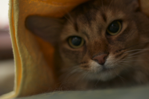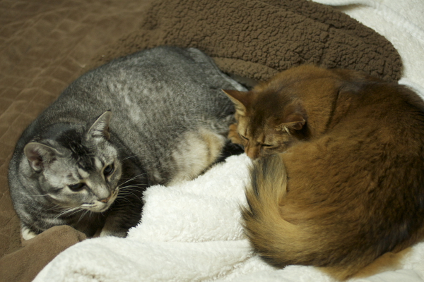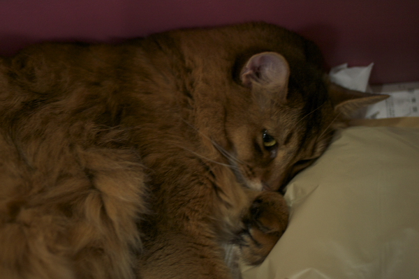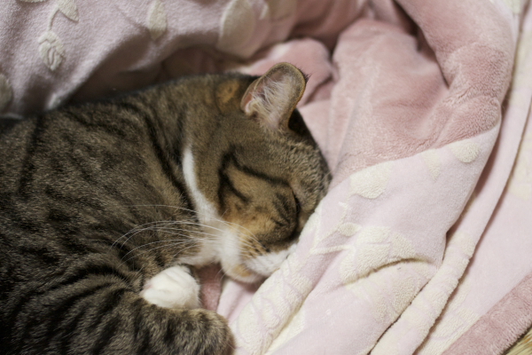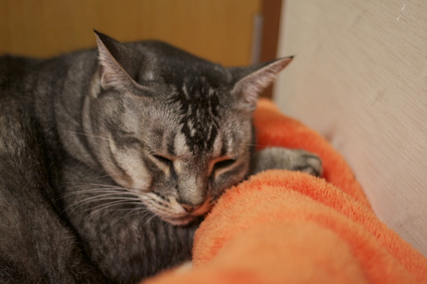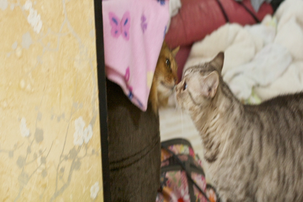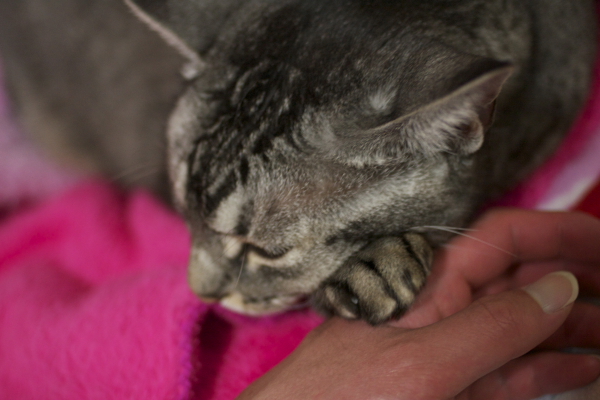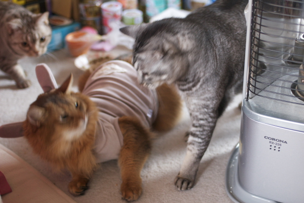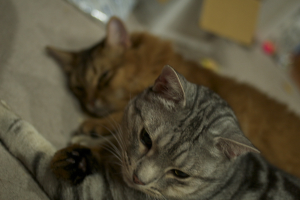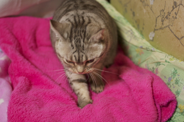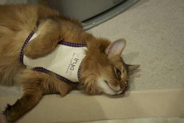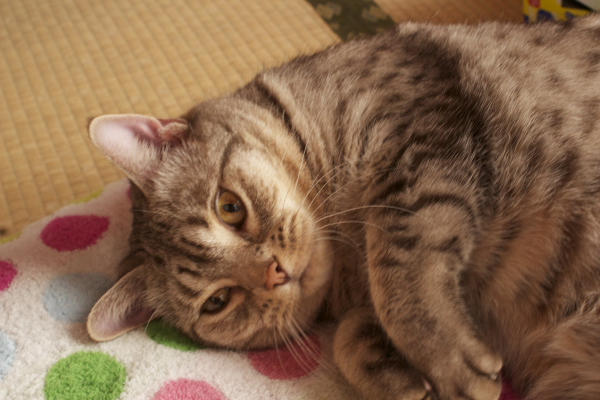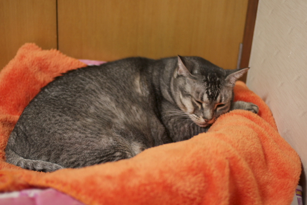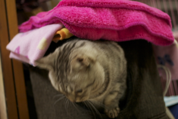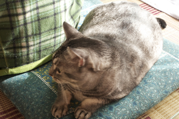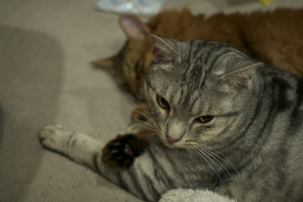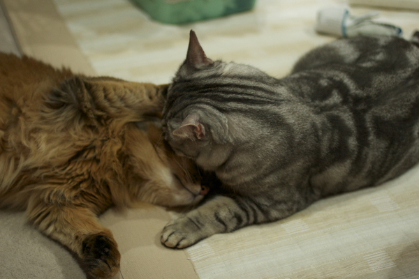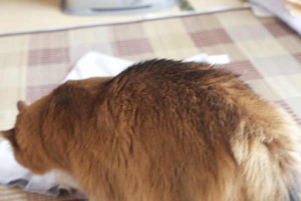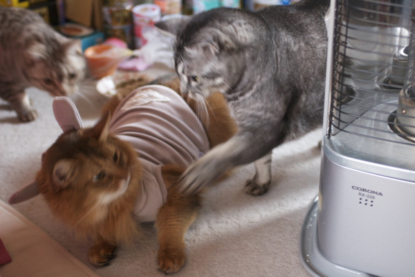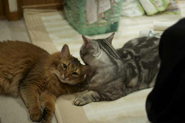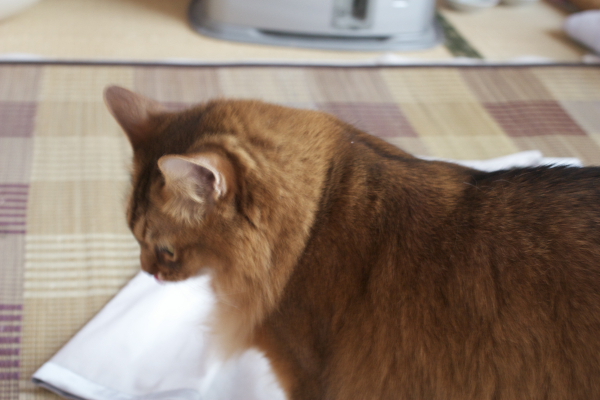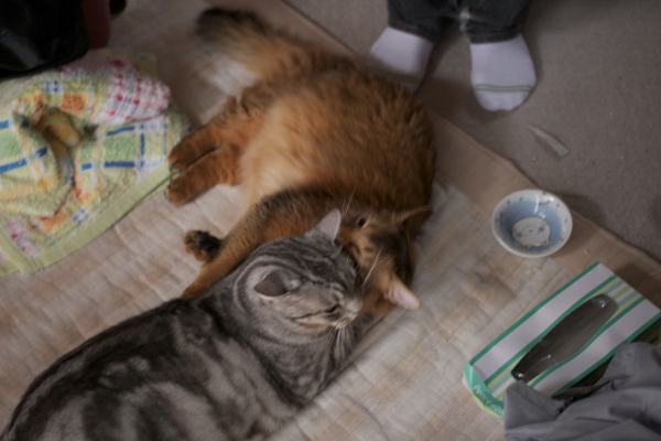 イリヤにはよくキャッチ&リリースされて弄ばれているような・・・本当はみんなの面倒を見たいおばあちゃん猫。(みんなの耳の匂いを優しく嗅いで舐めてあげようとする)動きは家の中で一番機敏。