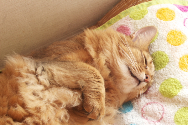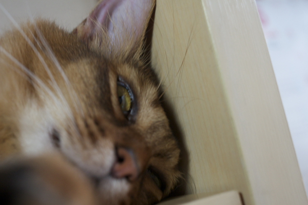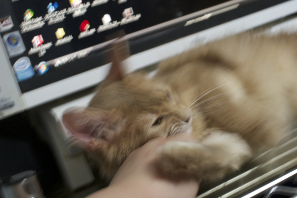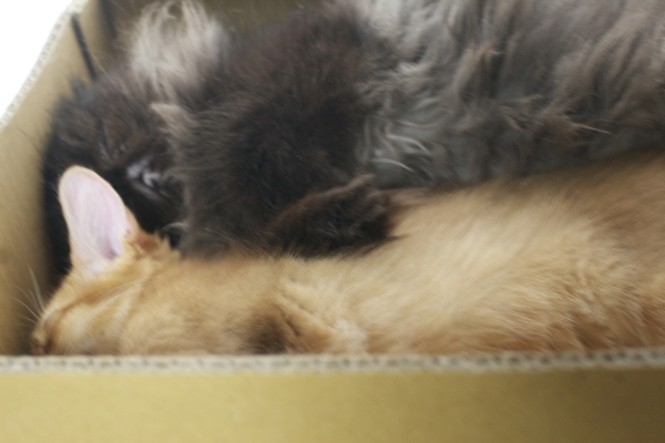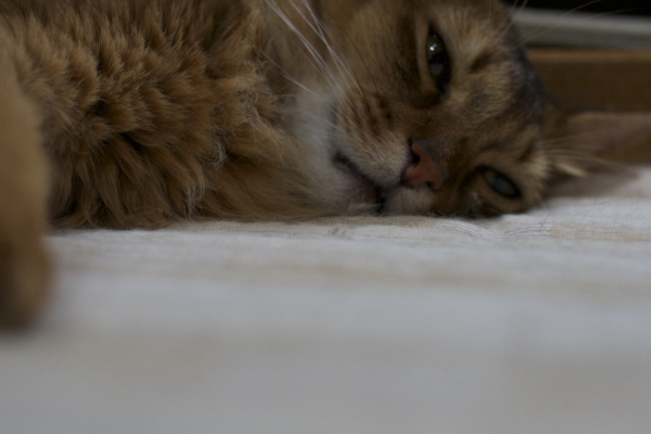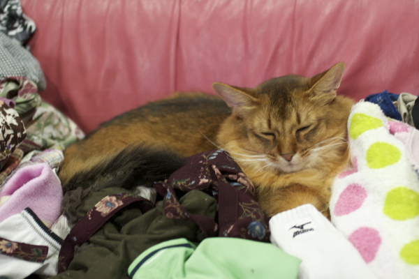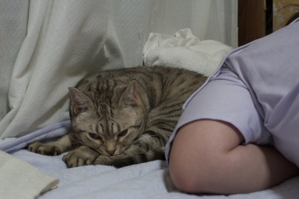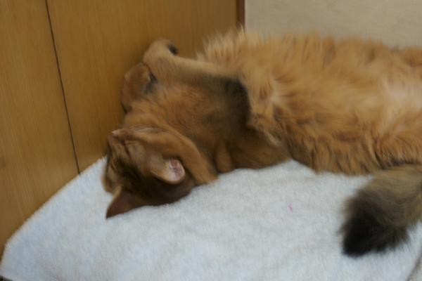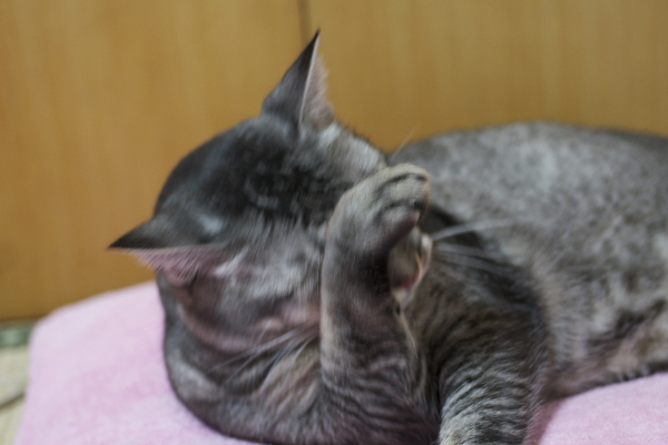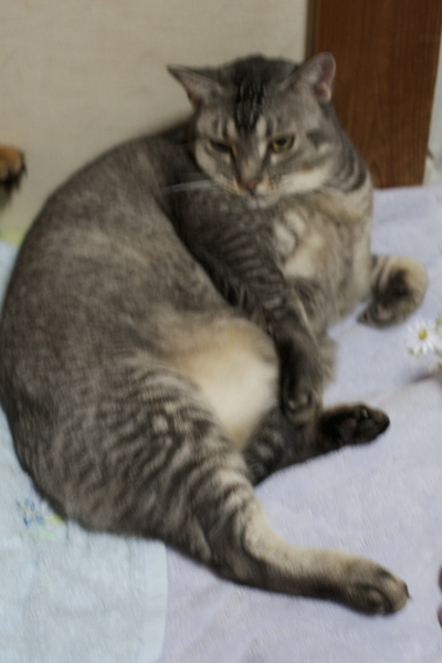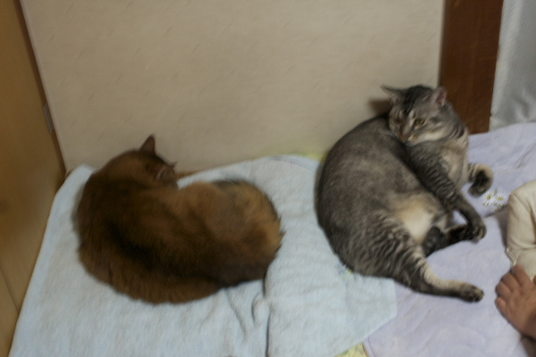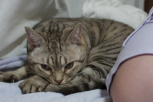 イリヤにはよくキャッチ&リリースされて弄ばれているような・・・本当はみんなの面倒を見たいおばあちゃん猫。(みんなの耳の匂いを優しく嗅いで舐めてあげようとする)動きは家の中で一番機敏。