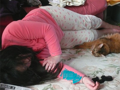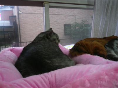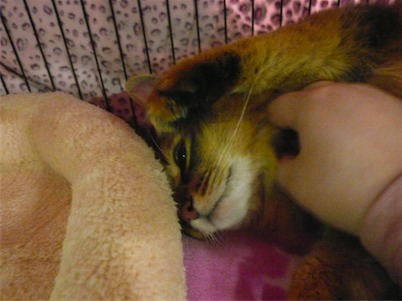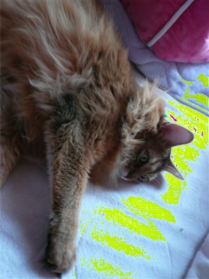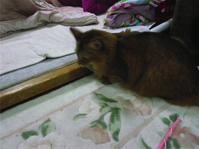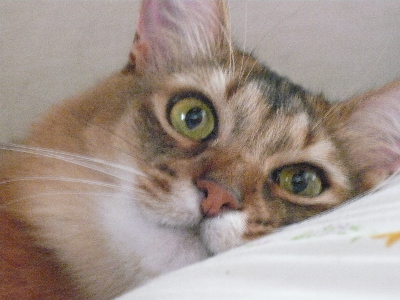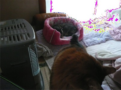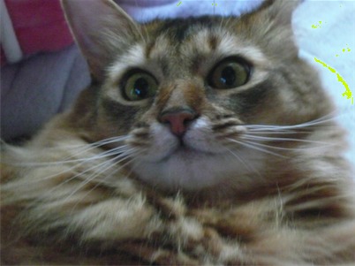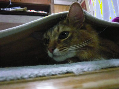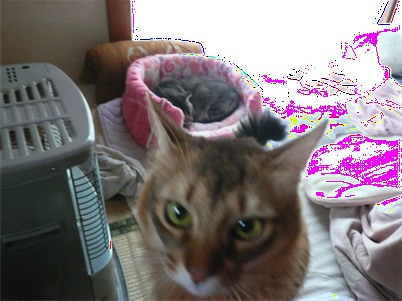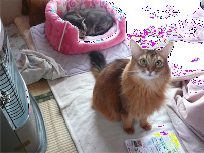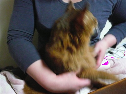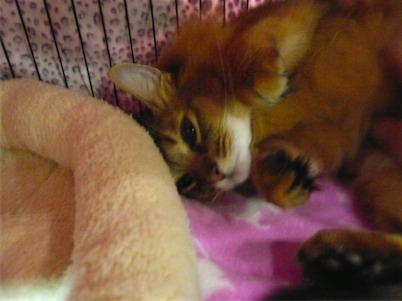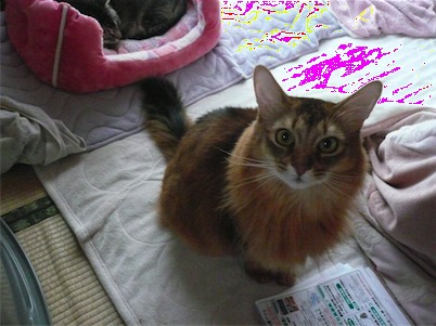 イリヤにはよくキャッチ&リリースされて弄ばれているような・・・本当はみんなの面倒を見たいおばあちゃん猫。(みんなの耳の匂いを優しく嗅いで舐めてあげようとする)動きは家の中で一番機敏。