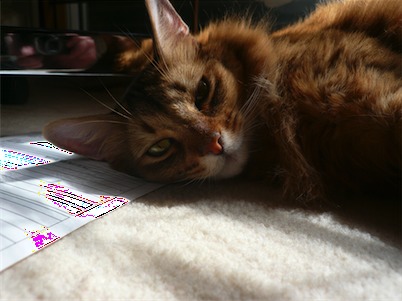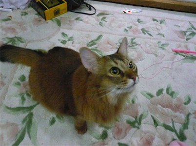 ロゼ ノアちゃんの妹。初めてポチポチ豹柄猫!!でも小さい頃は目がヘビっぽかった。(今だから言えるけど)多分イリヤと一番よく遊んでる。あだ名は小テト。最高にcuteで、書いてる人のことが大好き♥人間のひざの上でまったりしたり、指を舐めてくれる。